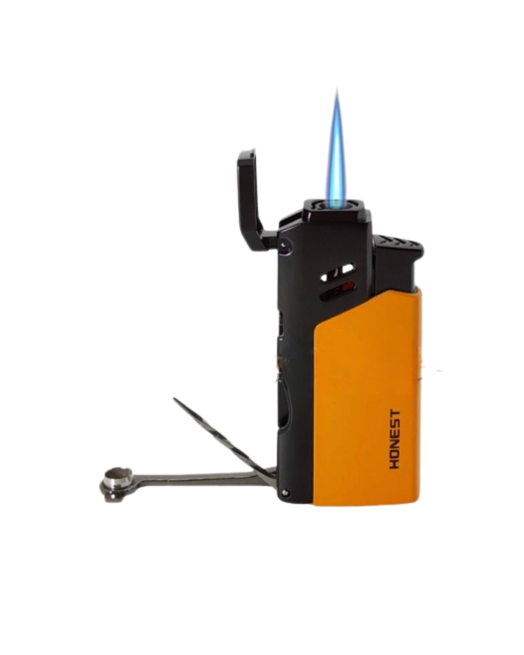 Maçarico 1 chama, cor amarelo com qualidade Honest. Recarregável a gás butano e chama ajustável.