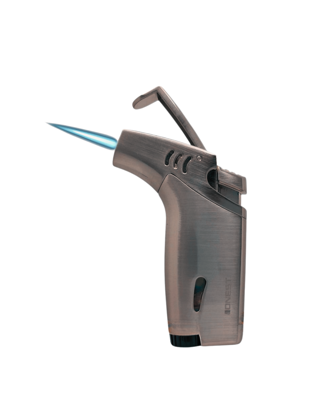 Maçarico 1 chama, cor grafite com qualidade Honest. Recarregável a gás butano e chama ajustável.