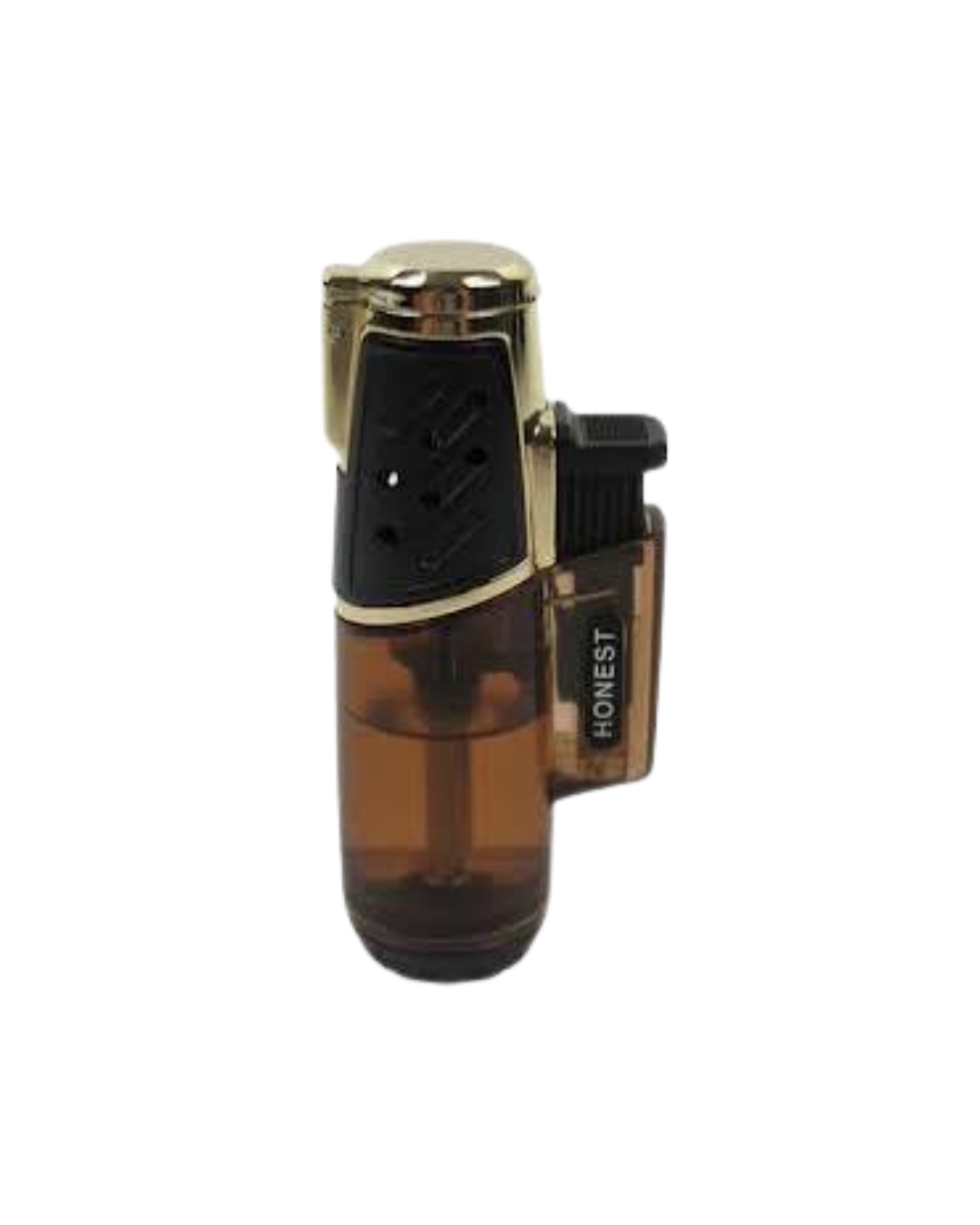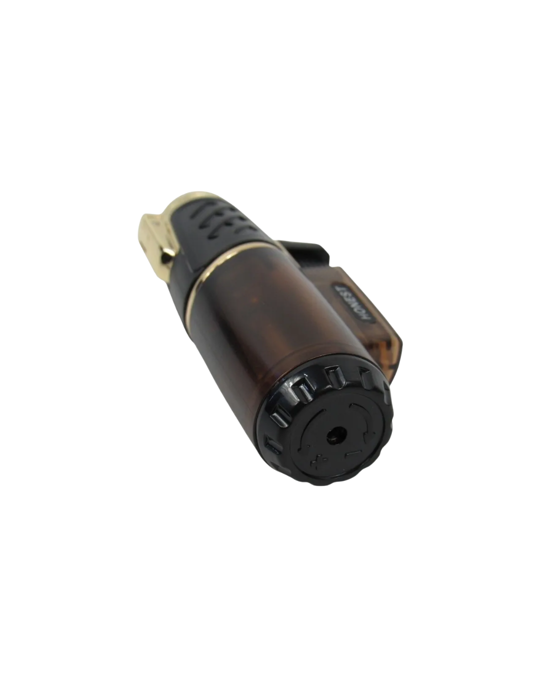 Maçarico com 1 chama, marrom com qualidade Honest. Recarregável a gás butano e chama ajustável.