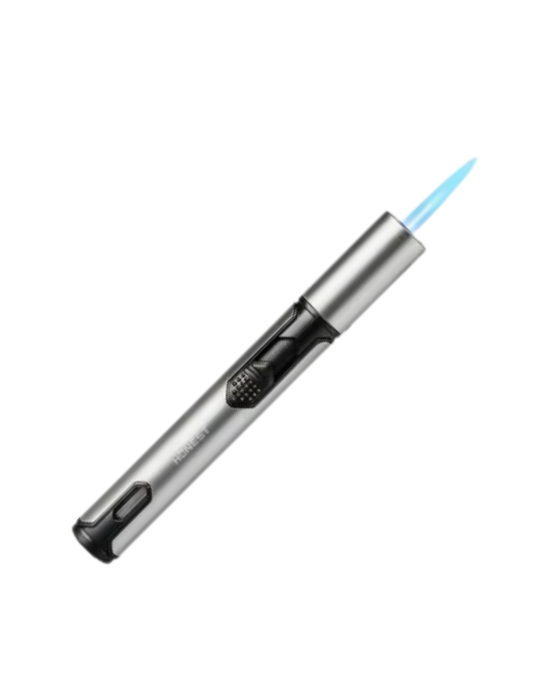 Maçarico com 1 chama, cor prata com qualidade Honest. Recarregável a gás butano e chama ajustável.