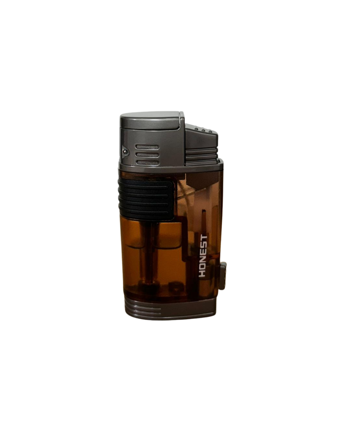 Maçarico com 2 chamas e furador, marrom com qualidade Honest. Recarregável a gás butano e chama ajustável.