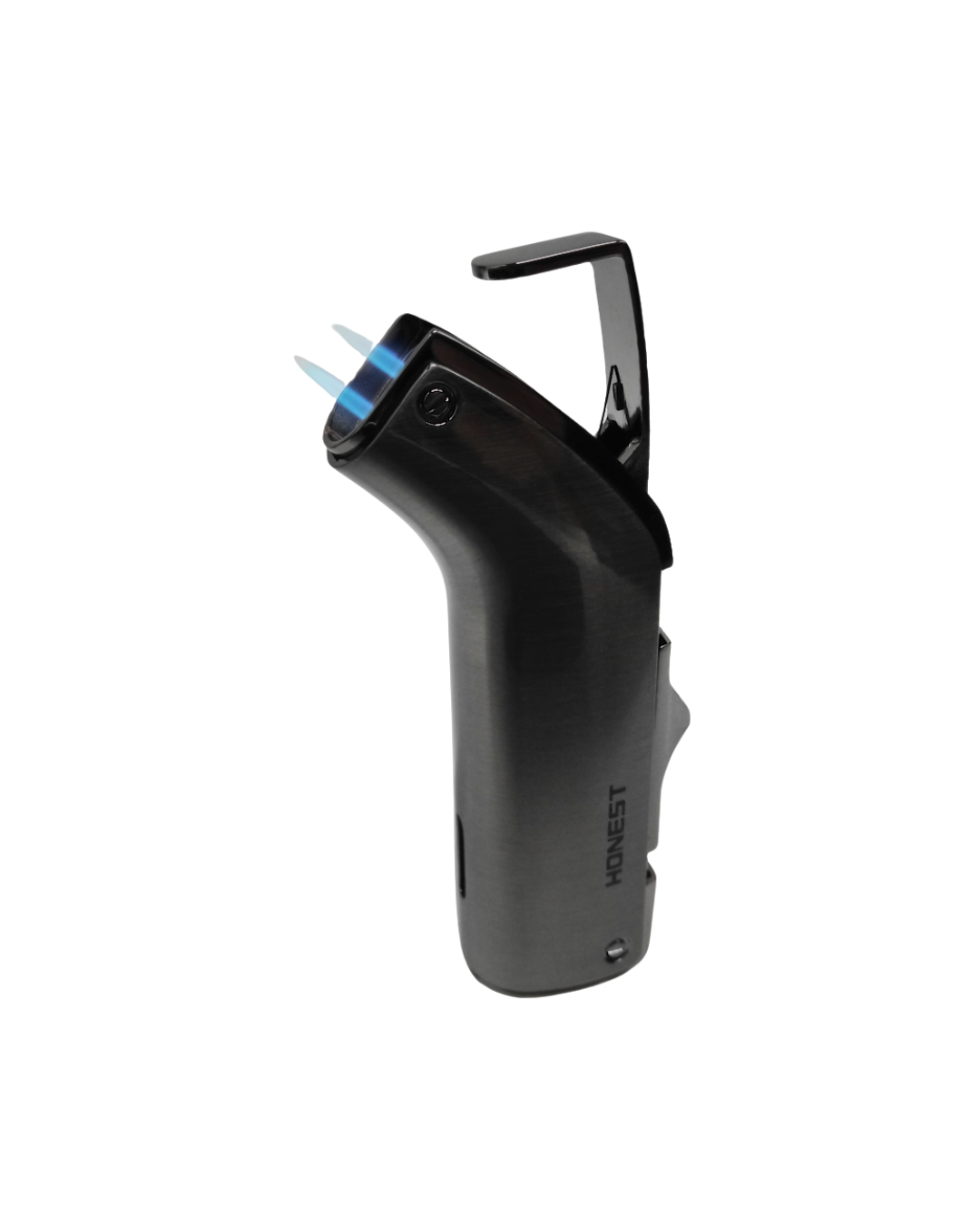 Maçarico com 2 chamas, preto com qualidade Honest. Recarregável a gás butano e chama ajustável.
