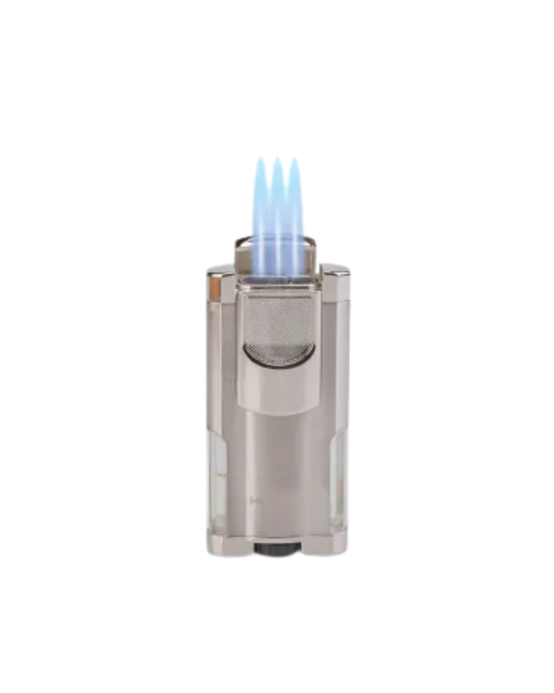 Maçarico com 3 chamas, prata com qualidade Honest. Recarregável a gás butano e chama ajustável.