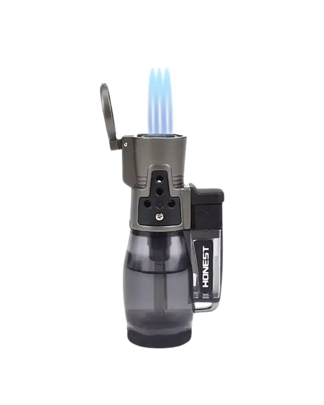 Maçarico 3 chamas, cor preto com qualidade Honest. Recarregável a gás butano e chama ajustável.