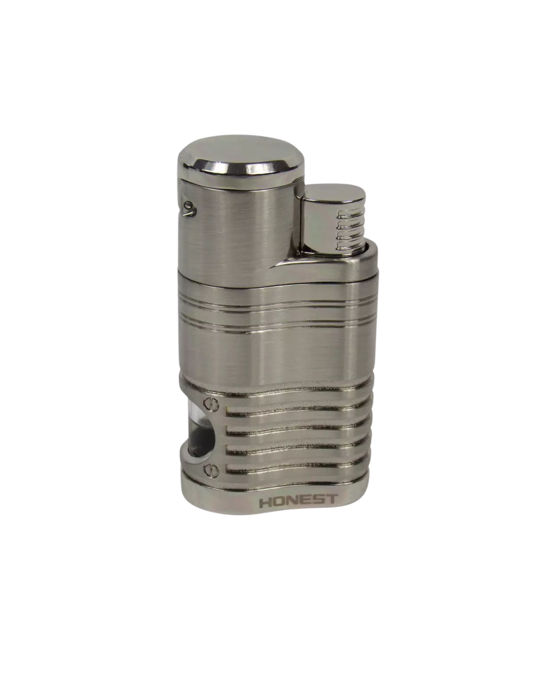 Maçarico com 4 chamas + furador, prata com qualidade Honest. Recarregável a gás butano e chama ajustável.