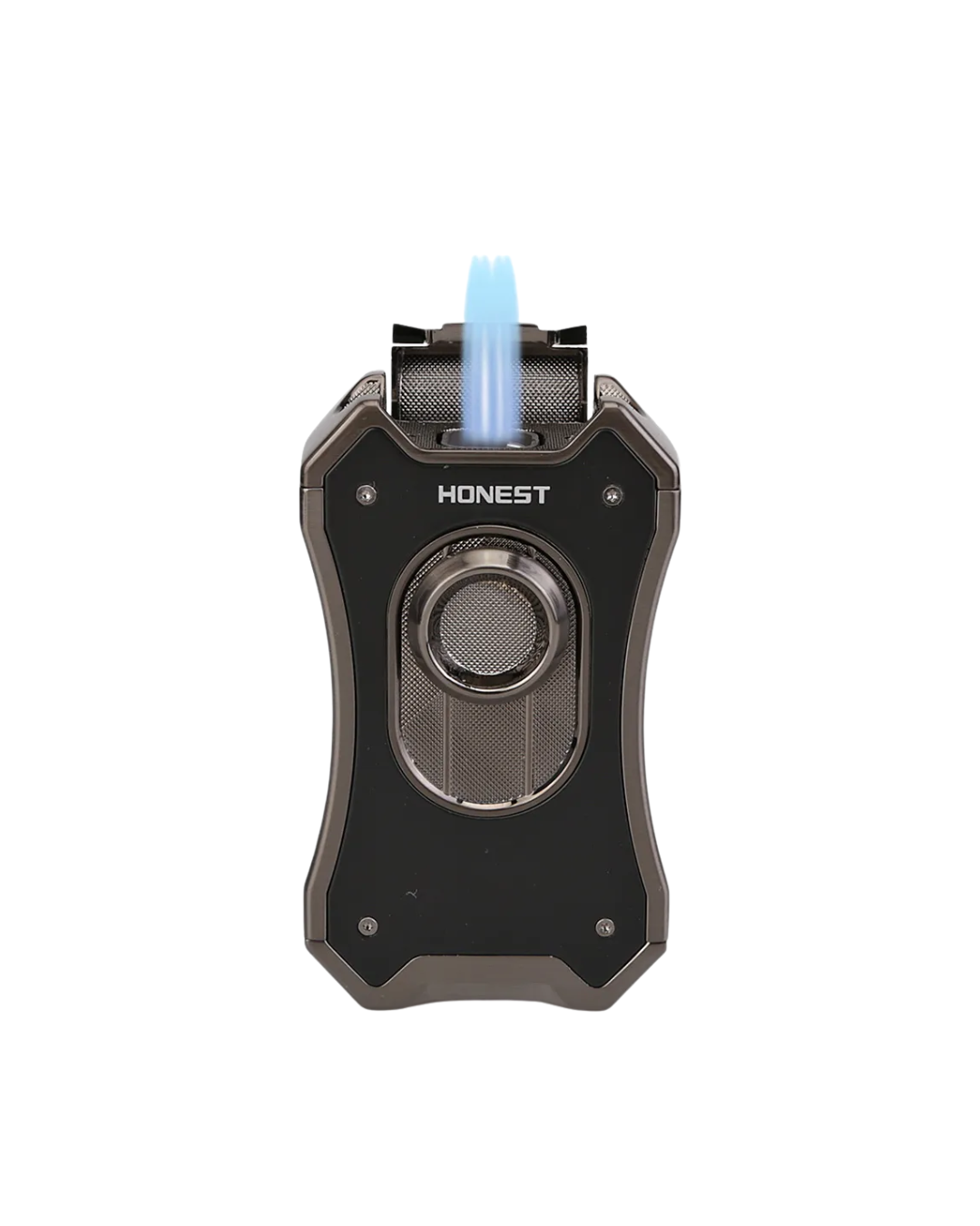 Maçarico com 2 chamas marrom com qualidade Honest. Recarregável a gás butano e chama ajustável.